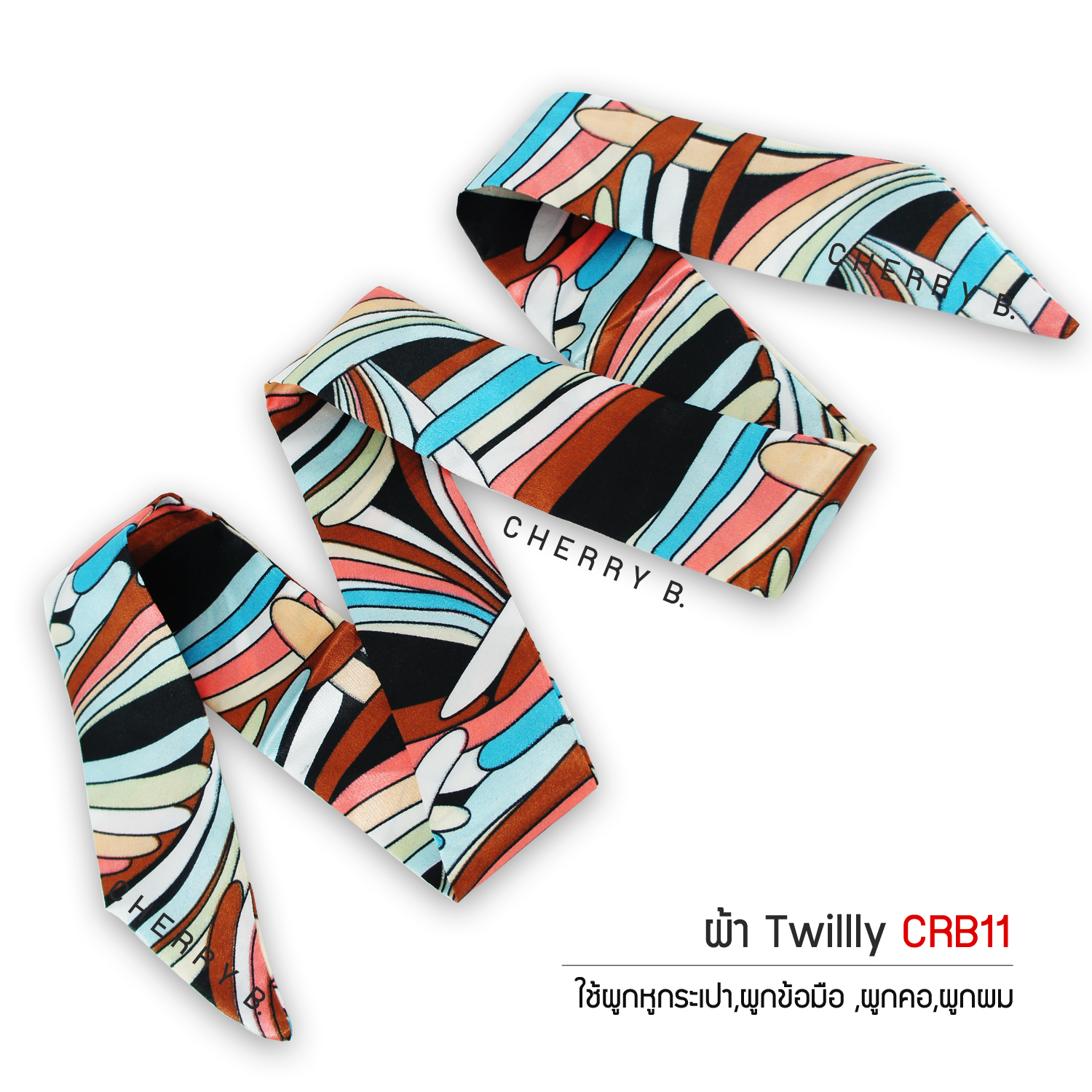 CHERRY B ผ้า Twilly ลาย CRB16 ผ้าผูกหูกระเป๋า ผูกผม ผ้าพันคอ ผูกข้อมือ